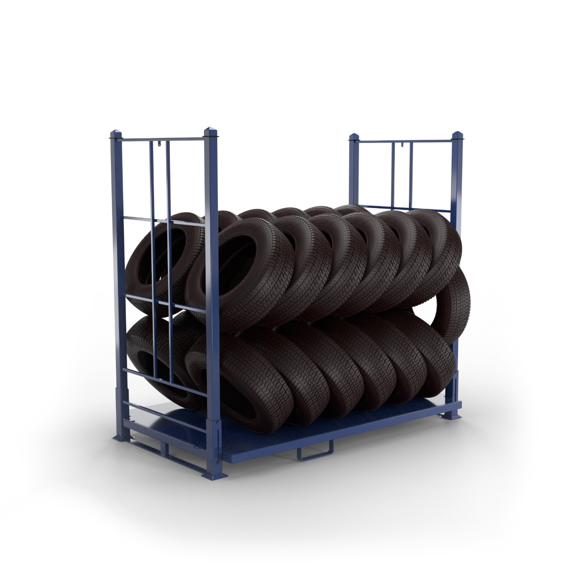 - Stoccaggio e trasporto di pneumatici – Il pallet è progettato appositamente per la conservazione di grandi pneumatici SUV, che possono essere disposti a spina di pesce. Con dimensioni di 1,4 m di larghezza e 2 m di altezza utile, garantisce condizioni di stoccaggio ottimali.